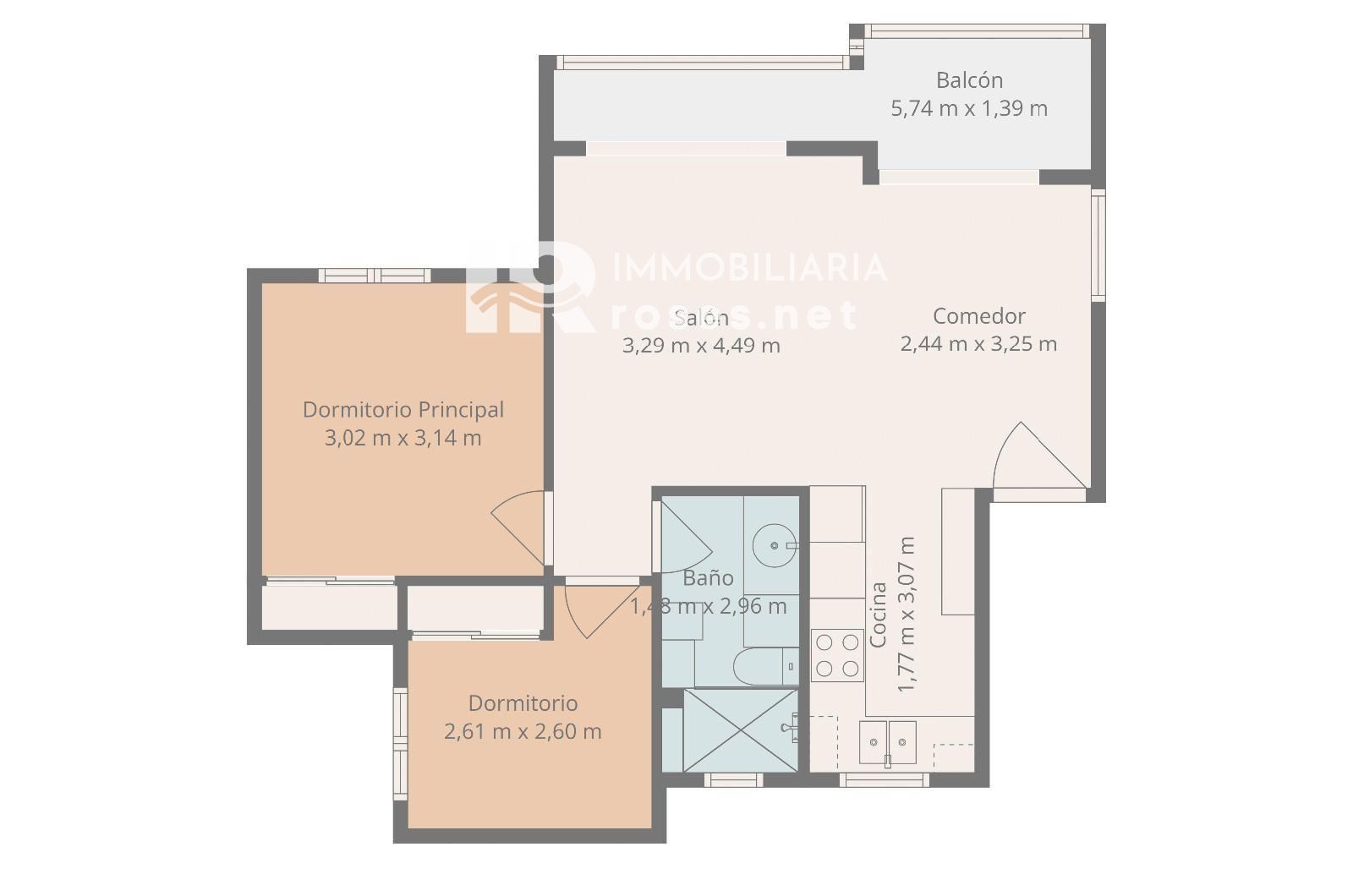 L’habitatge disposa d’un lluminós saló-menjador amb cuina oberta, dos dormitoris i un bany complet, amb un disseny modern i funcional. A més, compta amb aire condicionat per garantir el confort durant tot l’any.