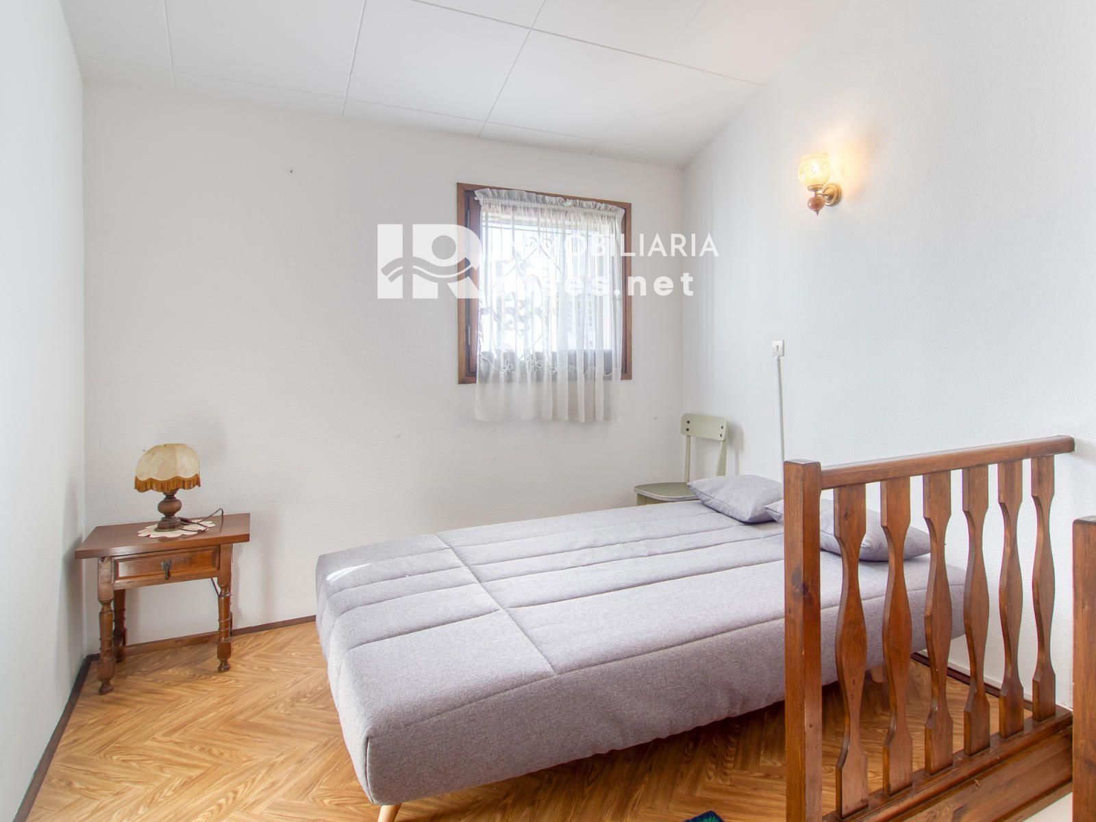 Im Erdgeschoss befinden sich ein helles Wohn-Esszimmer mit offener Küche, zwei Schlafzimmer – eines davon derzeit als zusätzlicher Küchenlagerraum genutzt – sowie ein komplettes Badezimmer mit Dusche. Von dieser Etage aus gelangt man direkt ins Freie, das dank seiner hervorragenden Ausrichtung den ganzen Tag über sonnig ist.