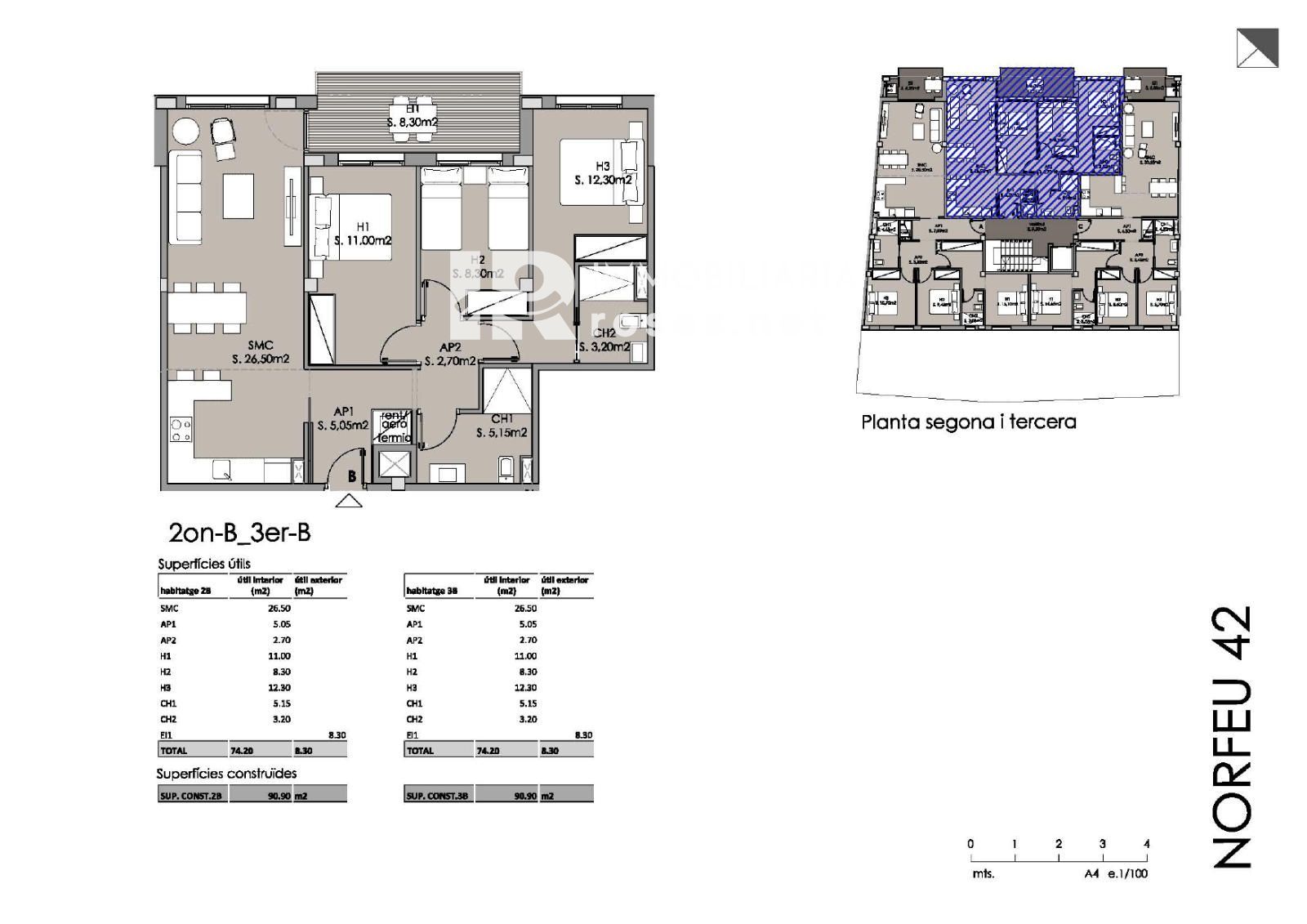 Apartamentos de 3 habitaciones y 2 baños desde 347.800 €, con opción de parking desde 25.750 € y trastero desde 6.760 €.